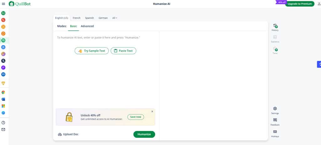 Humaniser AI targets customers needing fast revisions for emails or blogs the place absolute invisibility isn’t the precedence, however pure movement is. It gives a easy “paste and convert” interface with zero studying curve, good for pace and ease.